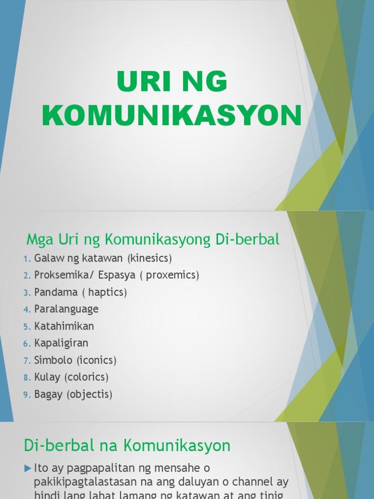 Berbal man o di-berbal na. Up to 3 cash back KOMUNIKASYONG DI BERBAL Malaki ang ginagampanang tungkulin ng komunikasyong di berbal sa pang-araw-araw na buhay. Ang berbal na komunikasyon ay gumagamit ng salita o wika sa pagpapahayag ng kasipan damdamin o saloobin sa paraang salita.