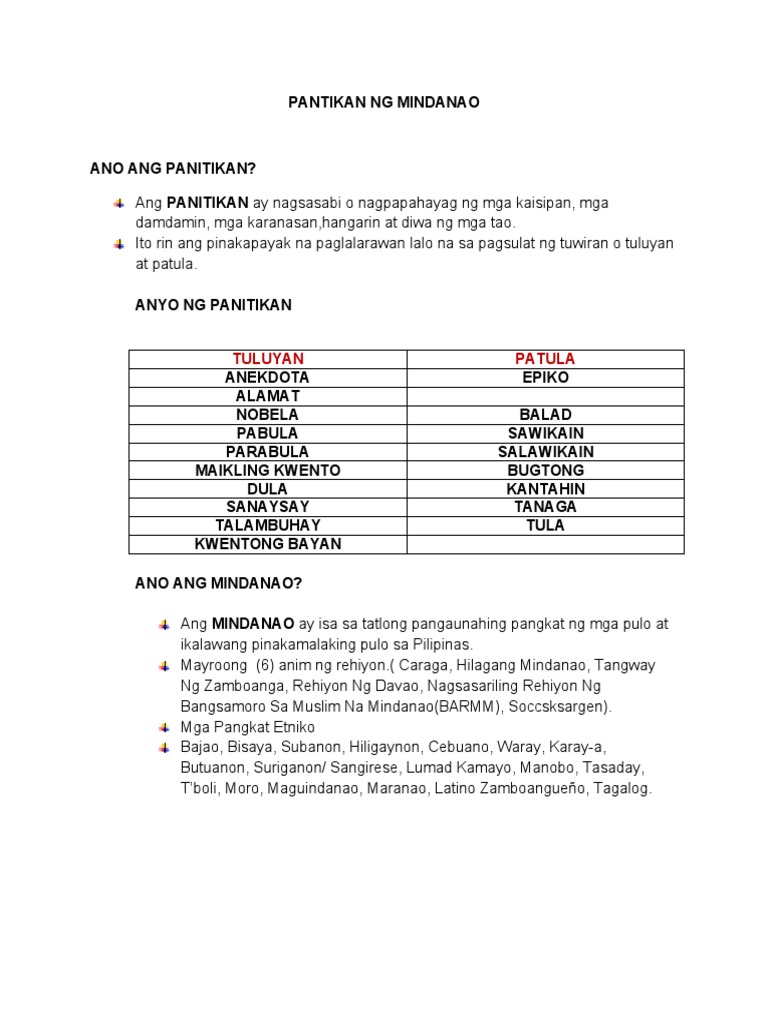 Download Full PDF Package. F Ang literatura ng Metro Manila ay sadyang napakahirap. SINING AT KULTURA NG MINDANAO Kilala ang mga mamamayan sa Mindanao sa kanilang makulay na sining at kultura.