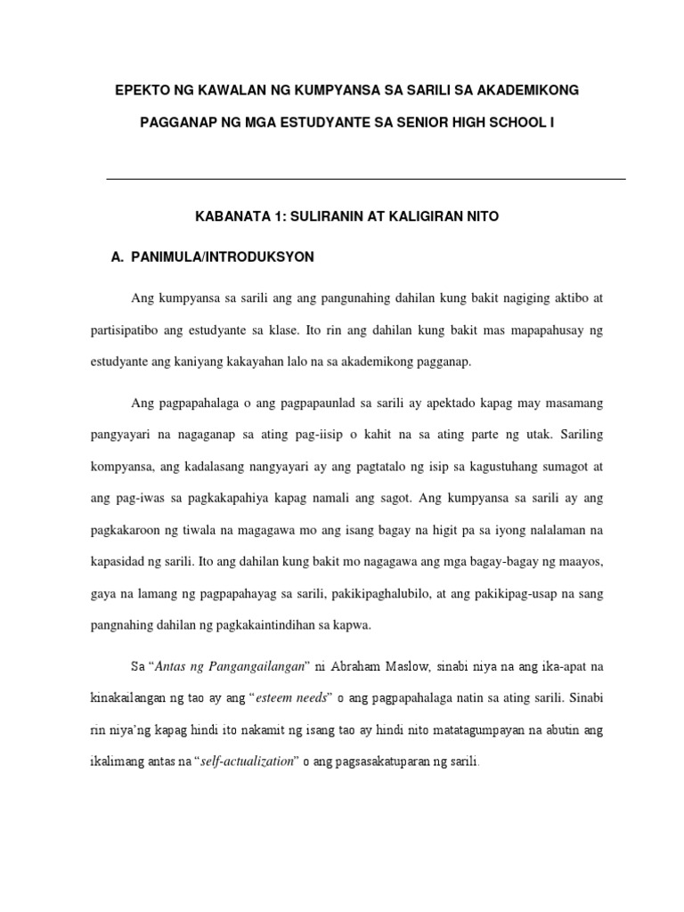 Epekto Ng Kumpiyansa Sa Sarili Sa Akademikong Pag Ganap Pdf