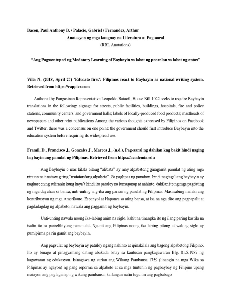 Anotasyon Ng Mga Kaugnay Na Literatura At Pag Aaral Pdf