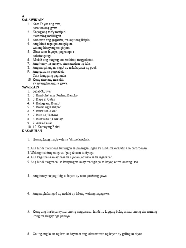 Sila ay masasaya dahil marami silang nakukuhang pagkain at mga hayop. Loanwords from other languages. It is a dialect continuum and its four main varietiessuch as Tuwaliare sometimes considered separate languages.